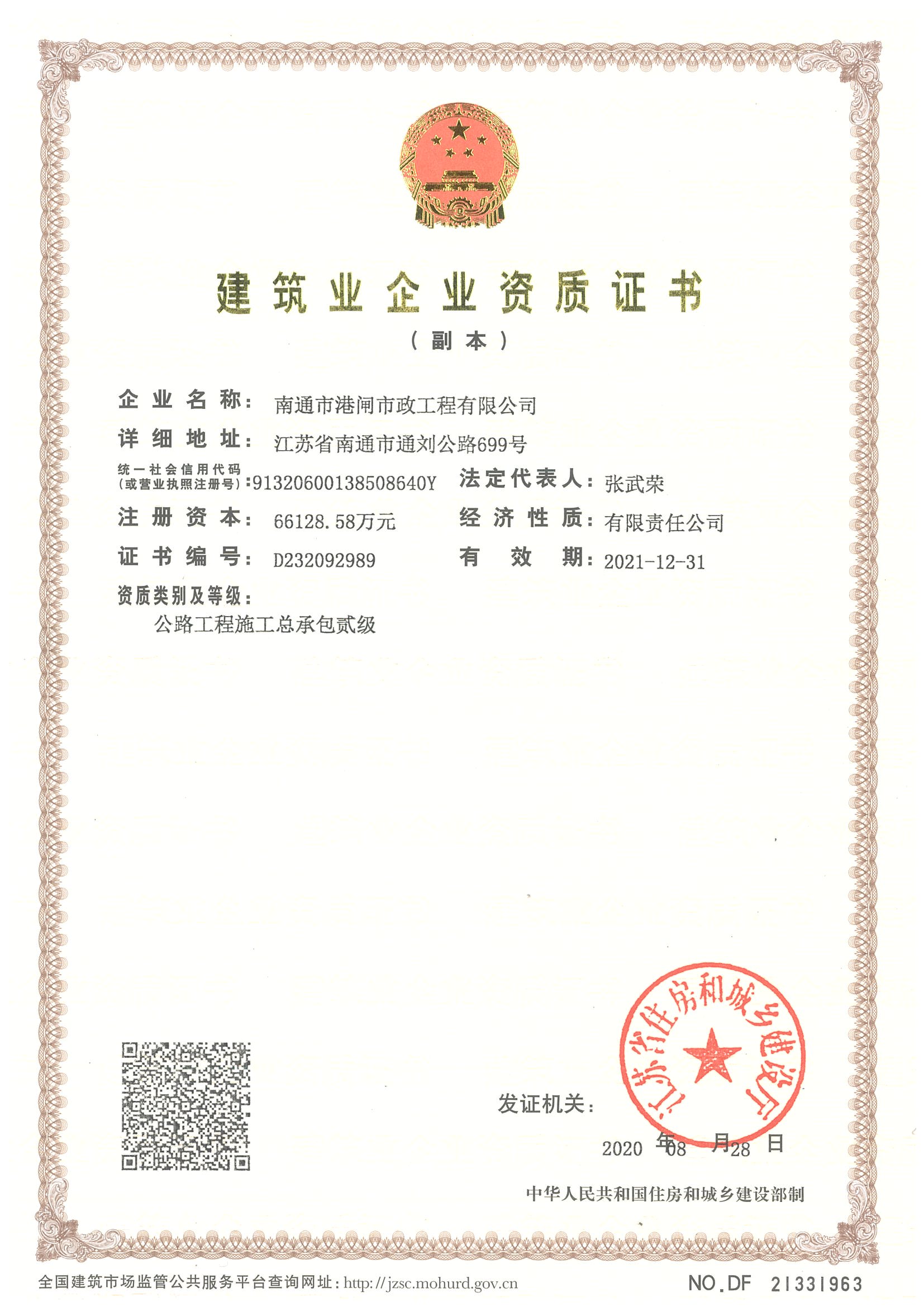 建筑業(yè)企業(yè)資質(zhì)證書(shū)(建筑工程施工總承包貳級(jí)、公路工程施工總承包貳級(jí))