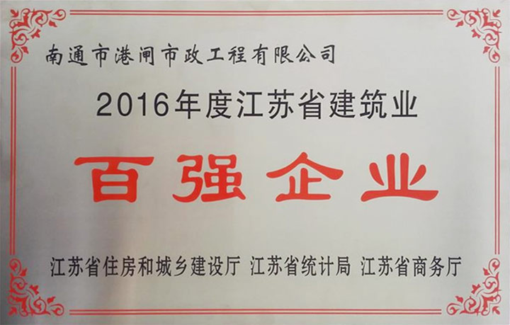 自2014年起,我公司連續(xù)三屆被江蘇省住建廳、商務(wù)廳、統(tǒng)計(jì)局認(rèn)定為“江蘇省建筑業(yè)百?gòu)?qiáng)企業(yè)”(基礎(chǔ)設(shè)施類(lèi))。