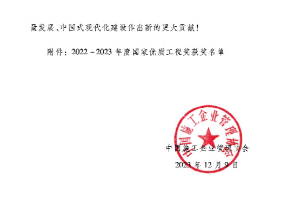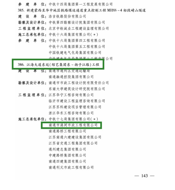 近日,中國施工企業(yè)管理協(xié)會發(fā)布2022-2023年國家優(yōu)質(zhì)工程獎名單,我公司參建的江海大道東延(綜藝集團東-揚子江路)工程登榜。