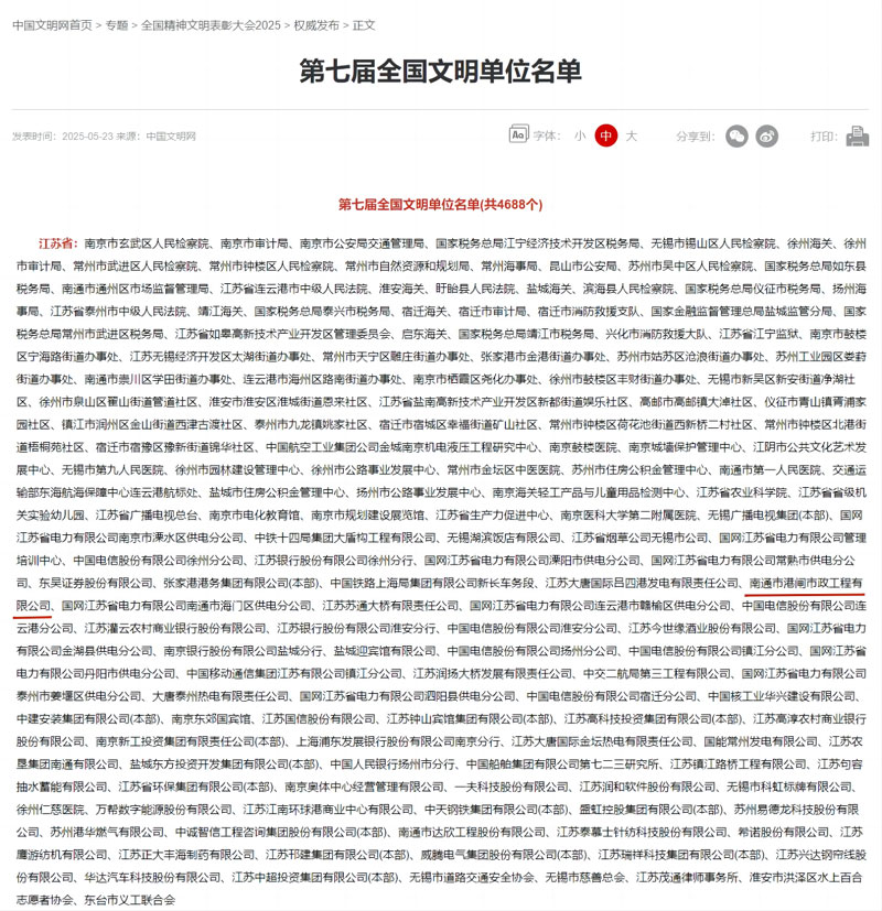 5月23日,中國(guó)文明網(wǎng)發(fā)布“中央宣傳思想文化工作領(lǐng)導(dǎo)小組關(guān)于認(rèn)定命名第七屆全國(guó)文明城市、文明村鎮(zhèn)、文明單位和第三屆全國(guó)文明家庭、文明校園的決定”,我公司獲評(píng)全國(guó)文明單位榮譽(yù)稱(chēng)號(hào),該獎(jiǎng)項(xiàng)是精神文明建設(shè)領(lǐng)域的最高榮譽(yù)。